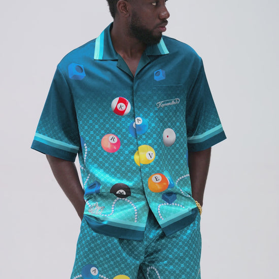 8Pools Blue Silk Shorts | Printed Silk Taffeta Relaxed Fit Nightlife Billiard Game