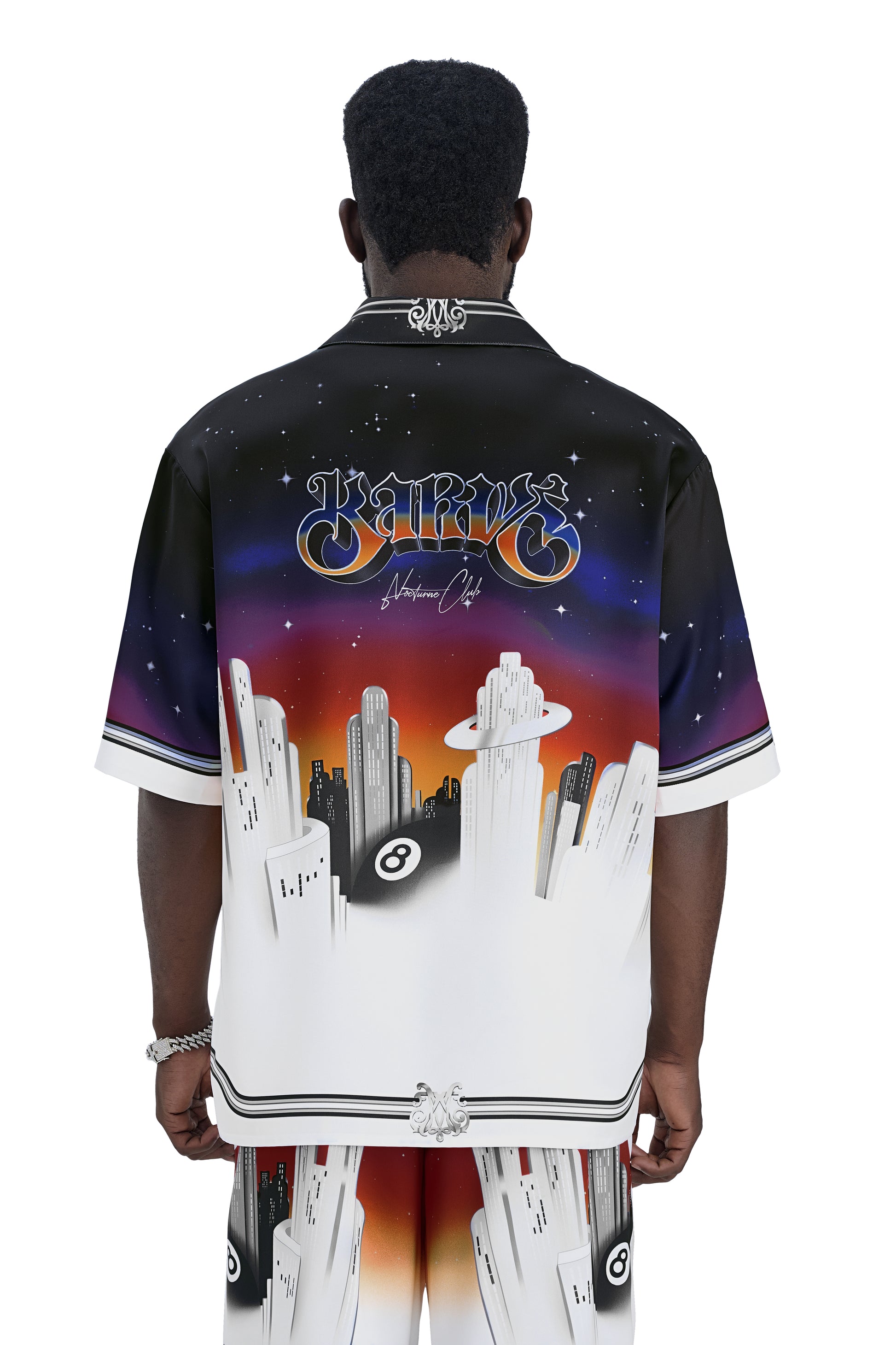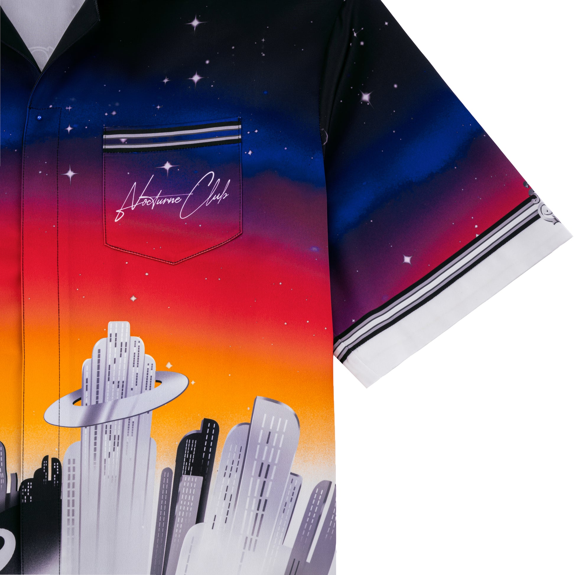 K City Silk Shirt | Printed Silk Camp Shirt Futuristic Cityscape