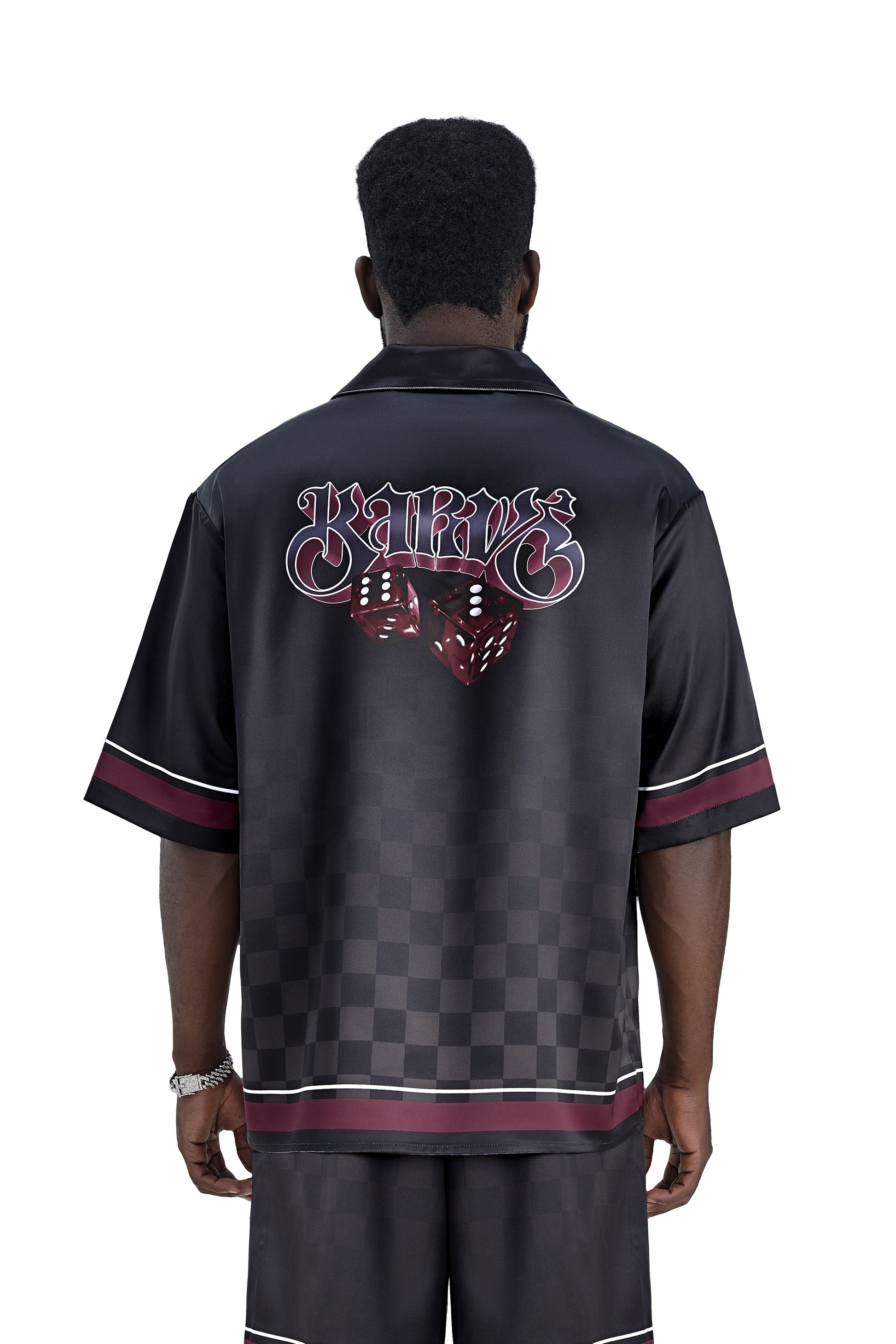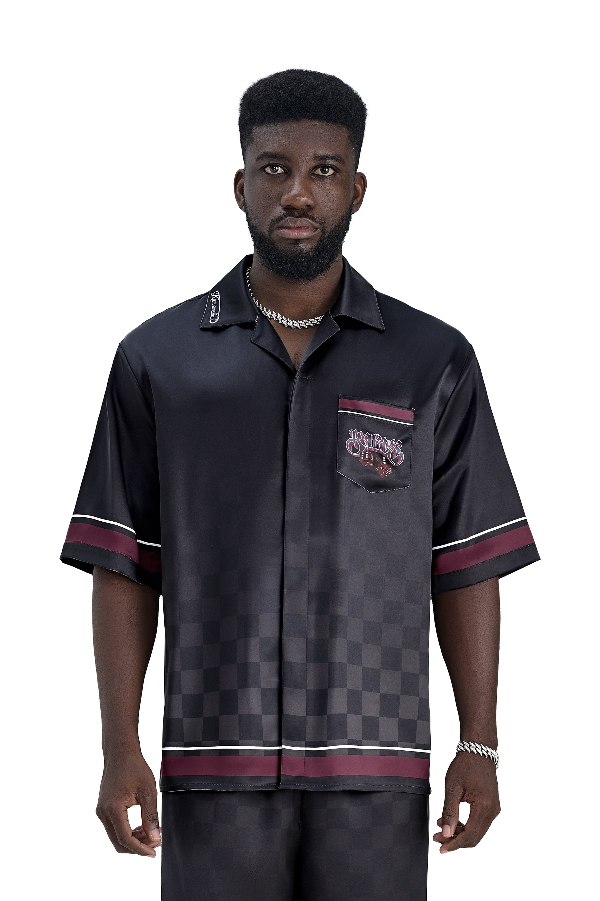 Lucky-K Silk Shirt | Printed Silk Relaxed Cuban Collar Short Sleeve Midnight Dice Checkerboard