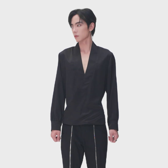 The Platinum Vault Silk Shirt | Shawl Collar Wrap Elegant Adjustable Fit