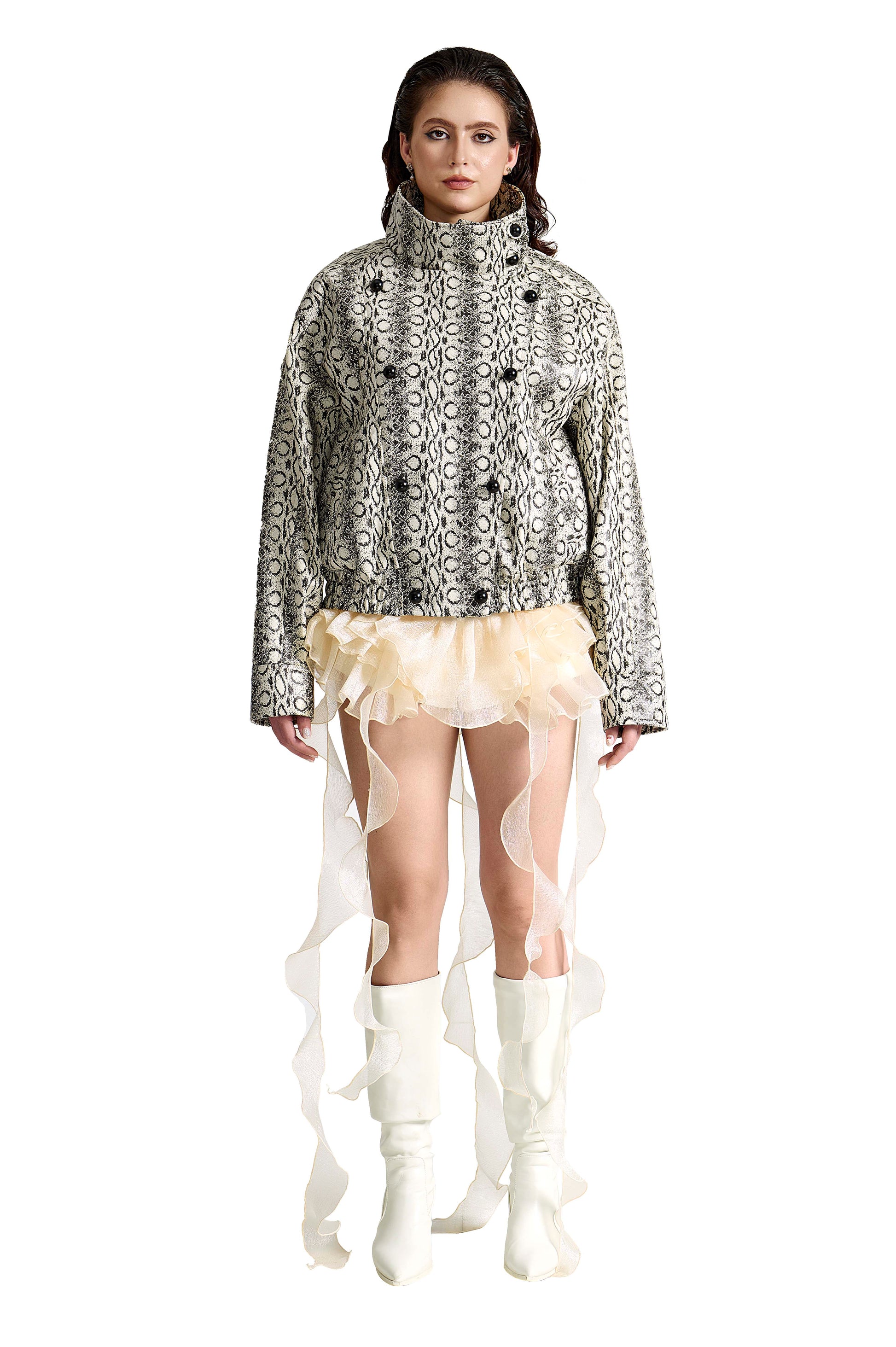 The Viper Commander Faux Leather Jacket | High-Collar Snake Print Structured Streetwear